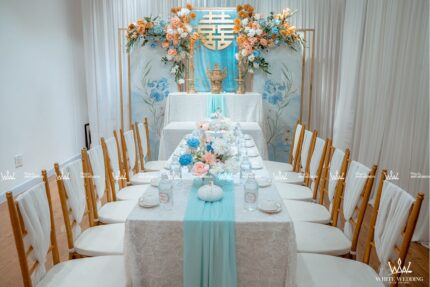 BLUE DREAM - SẮC XANH TƯƠI MÁT TRÀN ĐẦY SỨC SỐNG Trang trí lễ gia tiên - Được lấy cảm hứng từ màu của trời và biển bao la, rộng lớn mang lại cảm giác sâu thẳm, vững vàng và xanh dương còn là gam màu mang đến sự yên bình. Trong tình yêu, màu xanh dương biểu trưng cho một tình cảm gắn kết bền lâu, trong sáng và tinh khiết, ẩn chứa lời chúc phúc trăm năm yên bình mãi bên nhau. Lưu ý: • White Wedding sẽ tới nhà quý khách khảo sát trước khi trang trí set up. Thông thường set up hoàn thiện trước ngày lễ 1 ngày • Miễn phí phí vận chuyển và lắp đặt trang trí nhà trong vòng bán kính 5km (tính từ công ty)