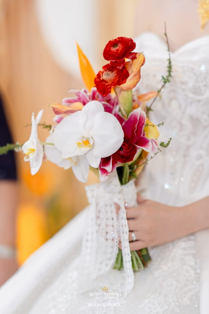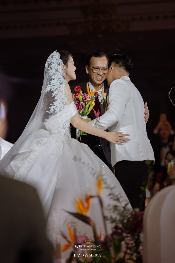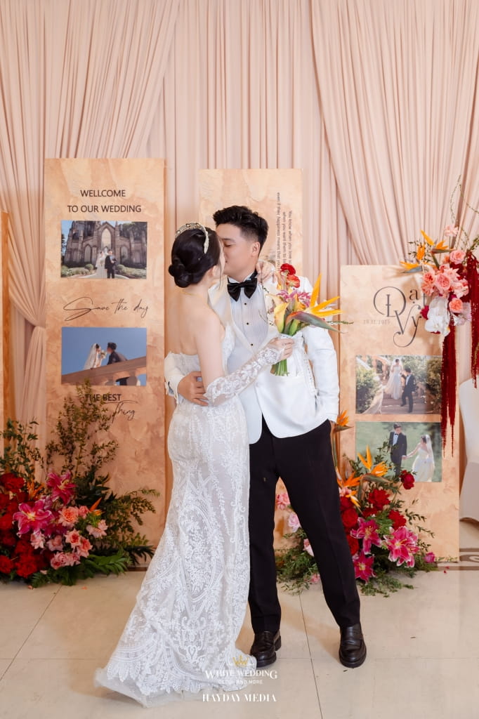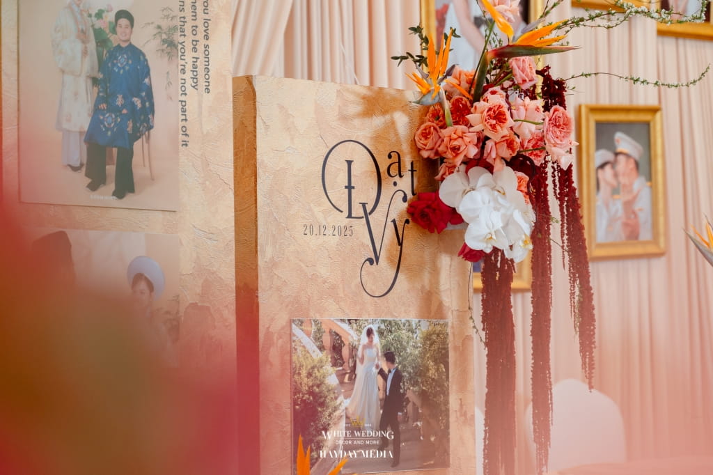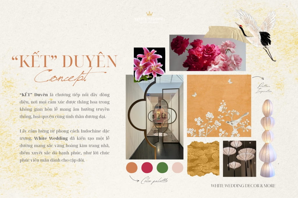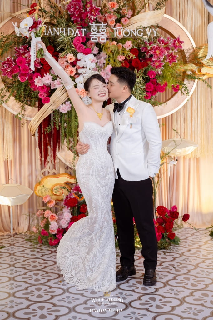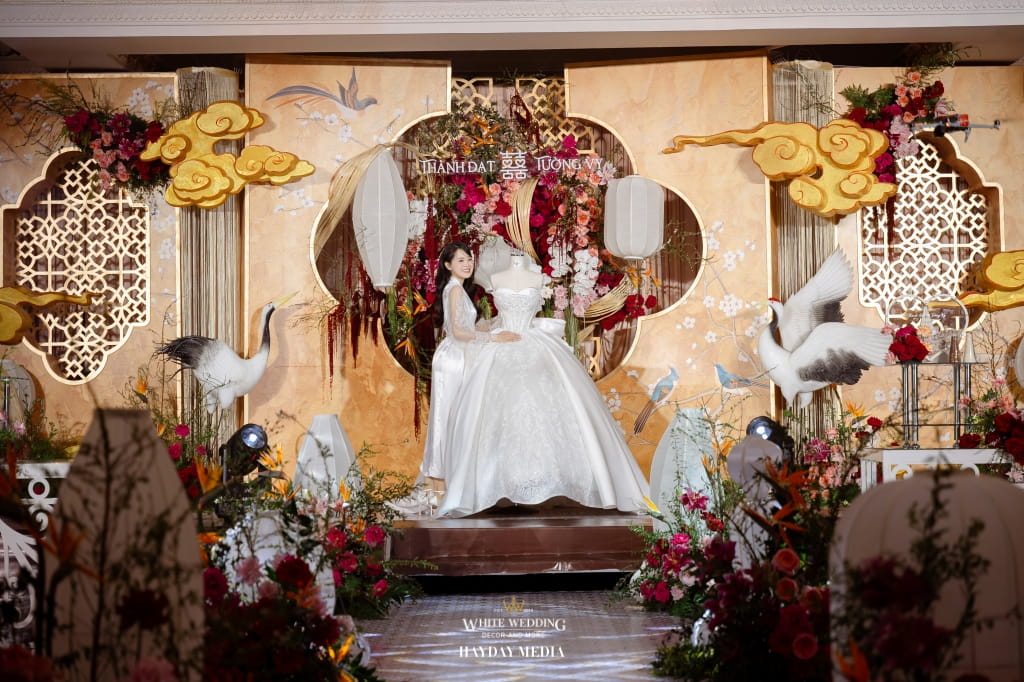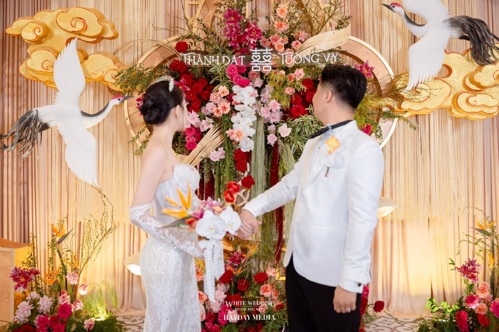 Lấy cảm hứng từ phong cách Indochine đặc trưng, White Wedding đã kiến tạo một lễ đường mang sắc vàng hoàng kim trang nhã, điểm xuyết sắc đỏ hạnh phúc, như lời chúc phúc viên mãn dành cho Thành Đạt & Tường Vy.