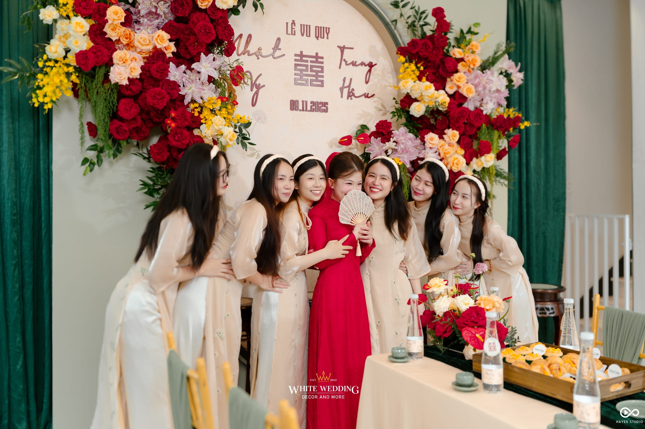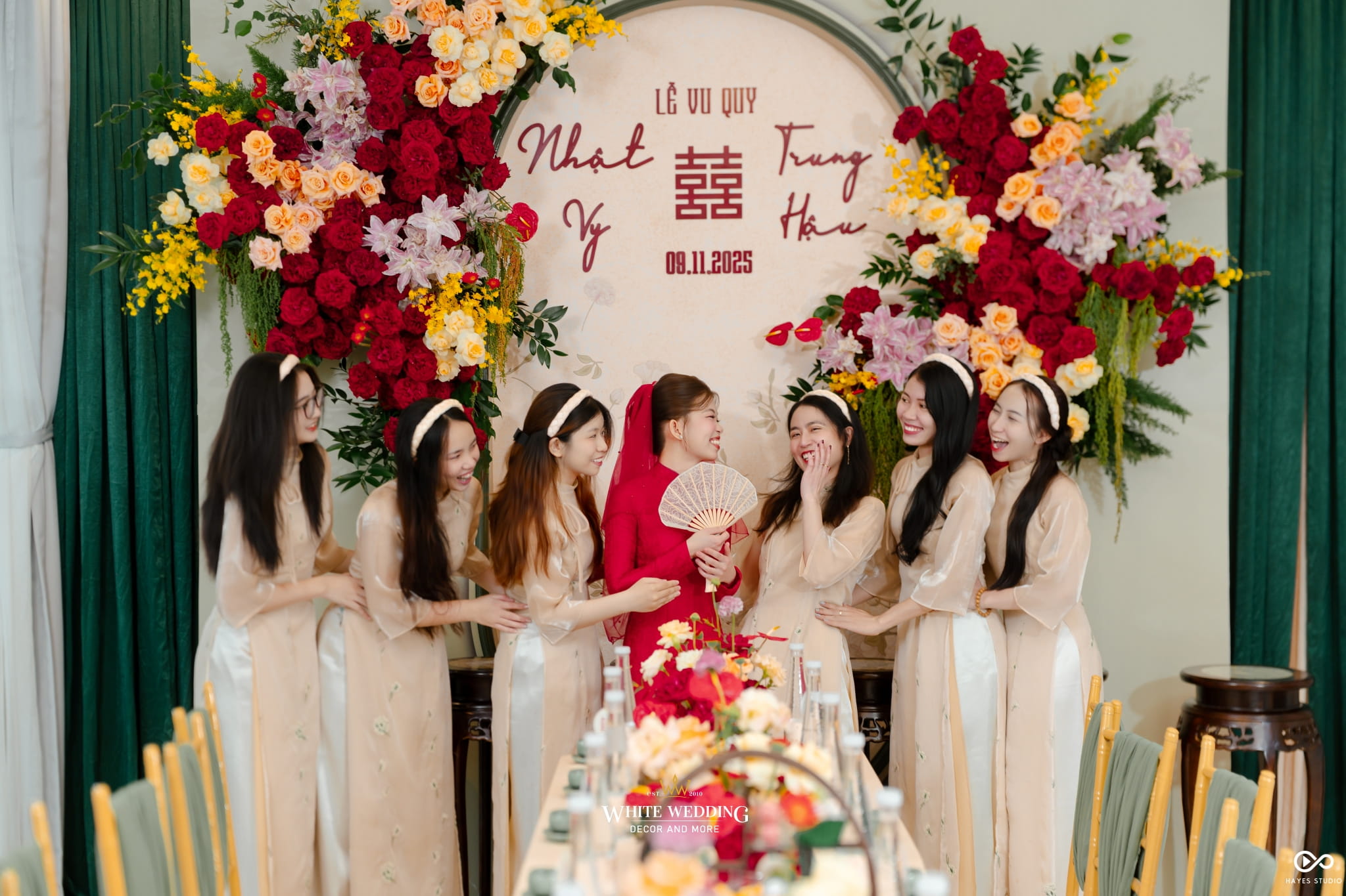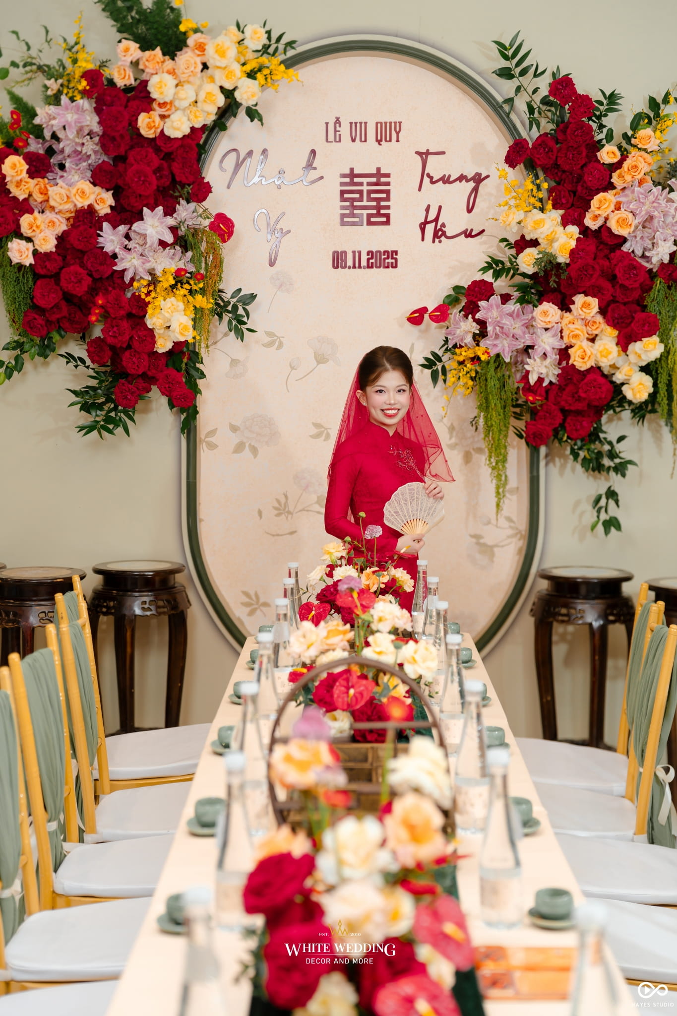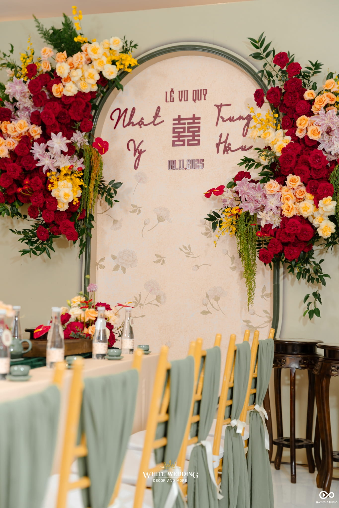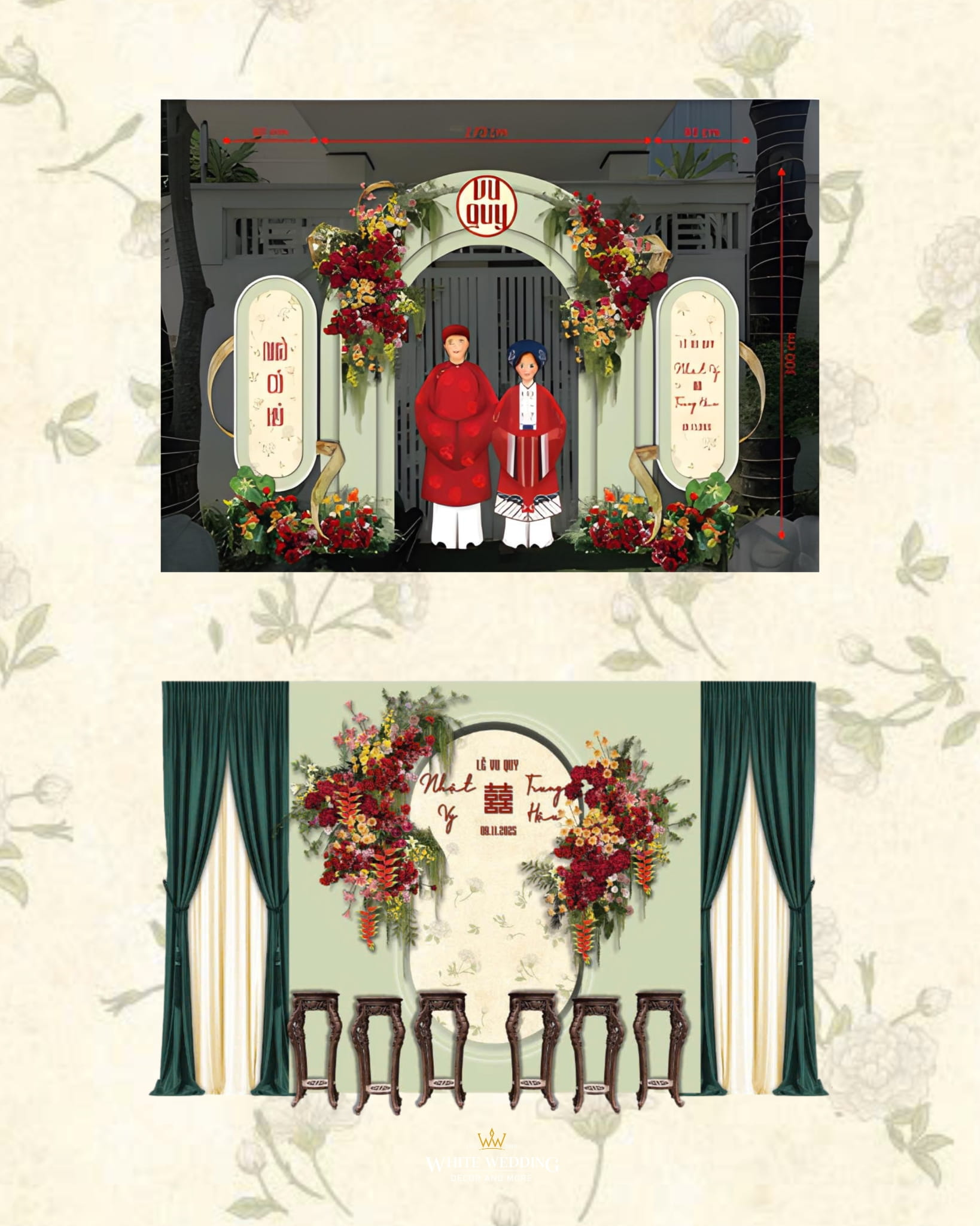 Với mong muốn gìn giữ nét đẹp truyền thống nhưng vẫn mang hơi thở hiện đại, White Wedding đã tạo nên concept gia tiên tone xanh mint – sắc xanh dịu mát, trẻ trung và thanh thoát. Từng chi tiết được phối hợp hài hòa, vừa sang trọng vừa tinh tế, mang đến không gian trao gửi lời chúc phúc an yên cho đôi uyên ương.