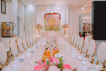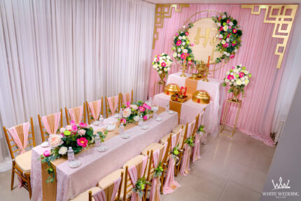LOTUS II - VẺ ĐẸP TRUYỀN THỐNG VĨNH CỬU Trang trí lễ gia tiên với tone hồng ngọt ngào và điểm nhấn chủ đạo Hoa Sen hiện đang là một trong những xu hướng trang trí không gian ngày lễ sang trọng, được các cặp đôi yêu thích cũng như trưởng bối rất hài lòng. Bởi Sen vừa mang một vẻ đẹp dịu dàng, thanh lịch, vừa gần gũi và còn là biểu tượng Việt Nam. Lưu ý: •  White Wedding sẽ tới nhà quý khách khảo sát trước khi trang trí set up. Thông thường set up hoàn thiện trước ngày lễ 1 ngày •  Miễn phí phí vận chuyển và lắp đặt trang trí nhà trong vòng bán kính 5km (tính từ công ty)